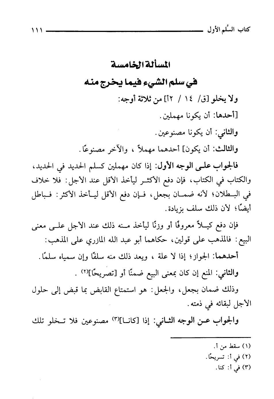 المسألة الخامسة في سلم الشىء فيما يخرج منه