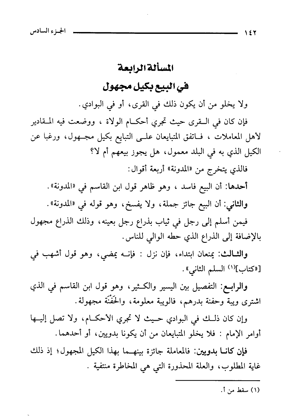 المسألة الرابعة في البيع بكيل مجهول