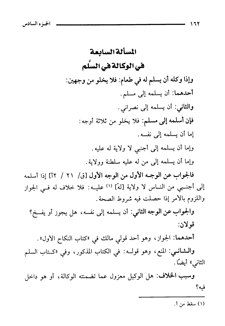 المسألة السابعة في الوكالة في السَّلم