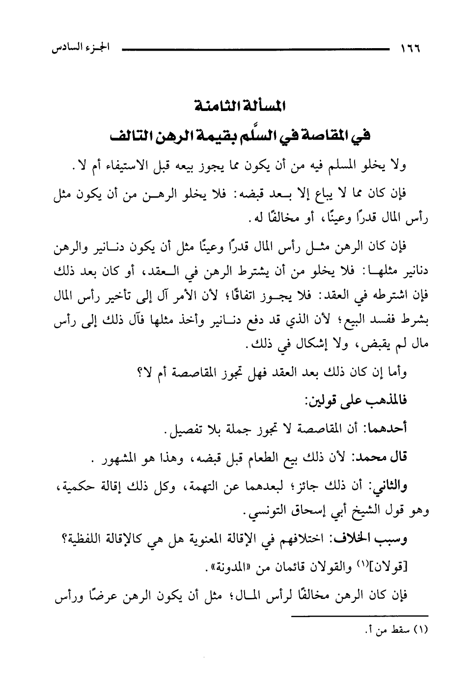 المسألة الثامنة في المقاصة في السَّلم بقيمة الرهن التالف