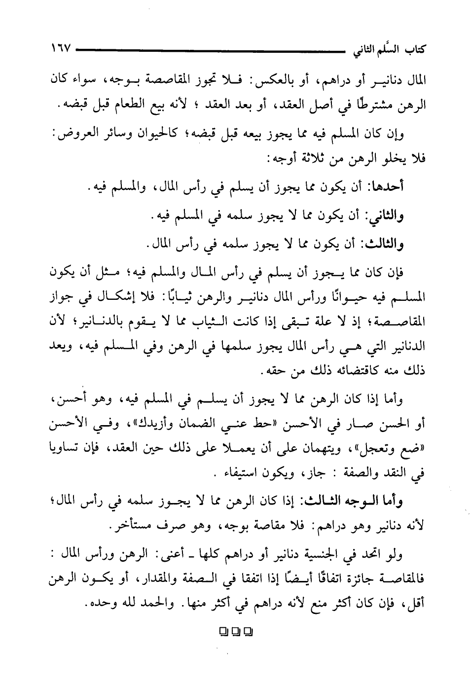 والثالث: أن يكون مما لا يجوز سلمه في رأس المال.