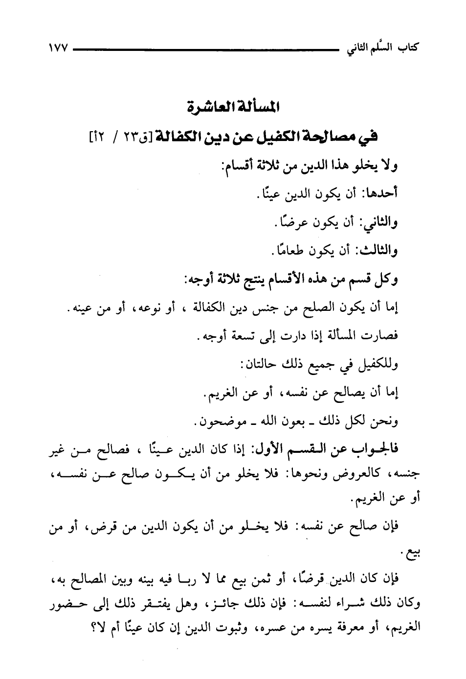 المسألة العاشرة في مصالحة الكفيل عن دين الكفالة