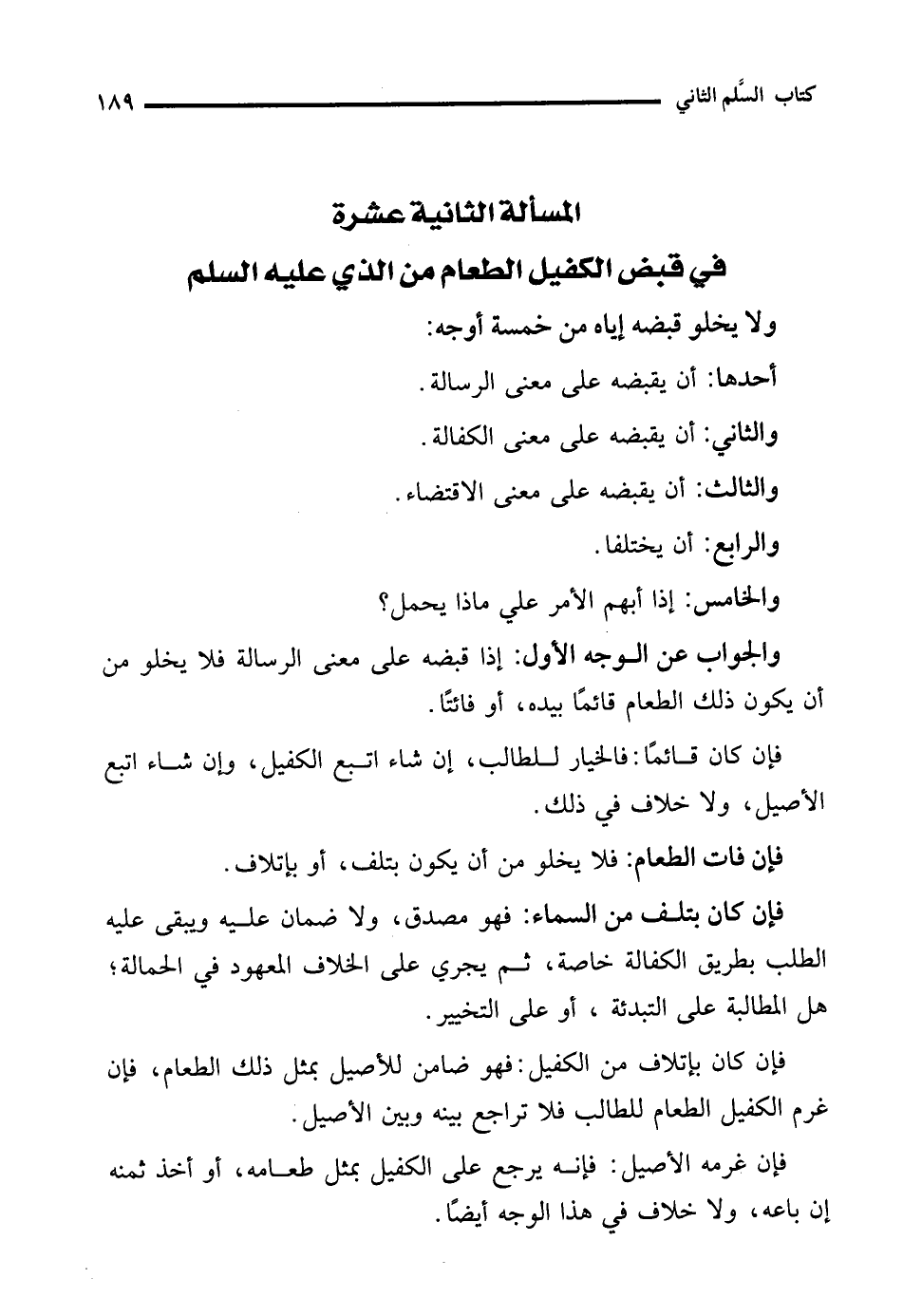 المسألة الثانية عشرة في قبض الكفيل الطعام من الذي عليه السلم