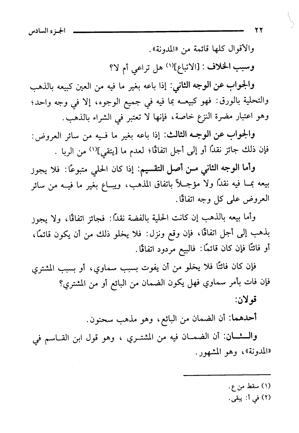 كتاب مناهج التحصيل ونتائج لطائف التأويل في شرح المدونة وحل مشكلاتها (اسم الجزء: 6)