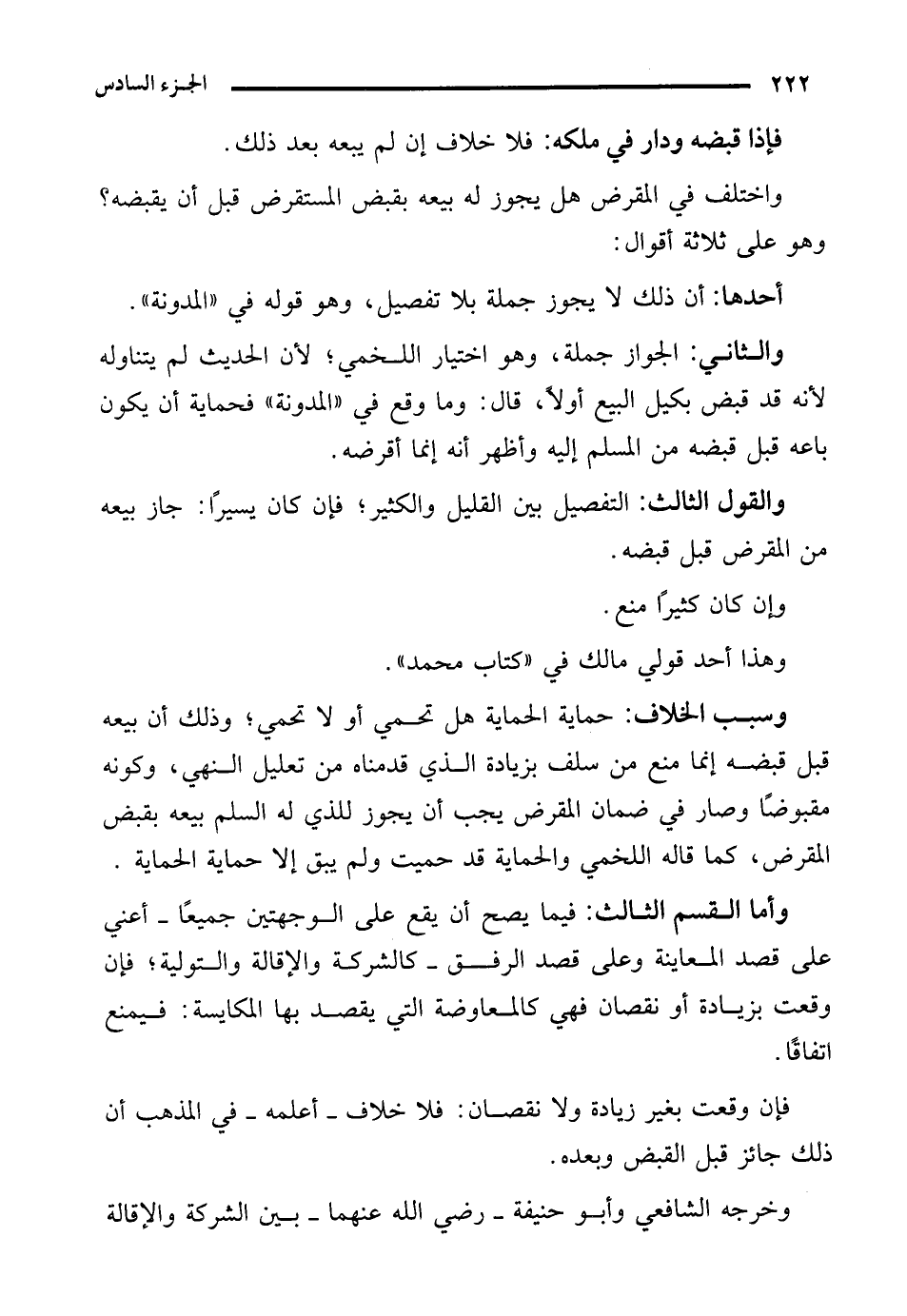 والقول الثالث: التفصيل بين القليل والكثير؛ فإن كان يسيرًا: جاز بيعه من المقرض قبل قبضه.