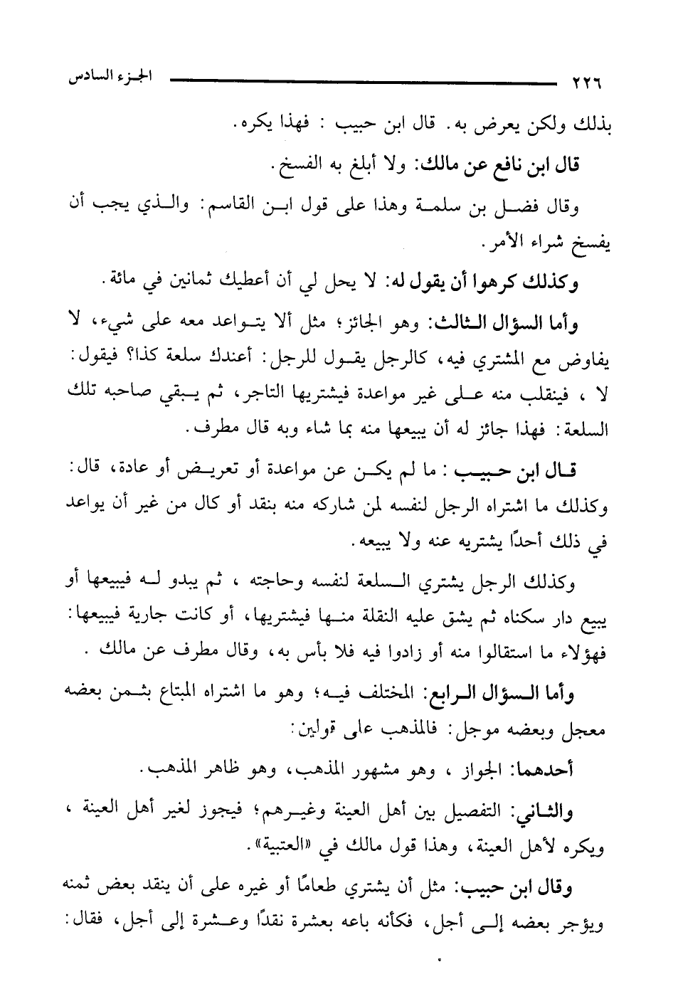 والثاني: التفصيل بين أهل العينة وغيرهم؛ فيجوز لغير أهل العينة، ويكره لأهل العينة، وهذا قول مالك في "العتبية".