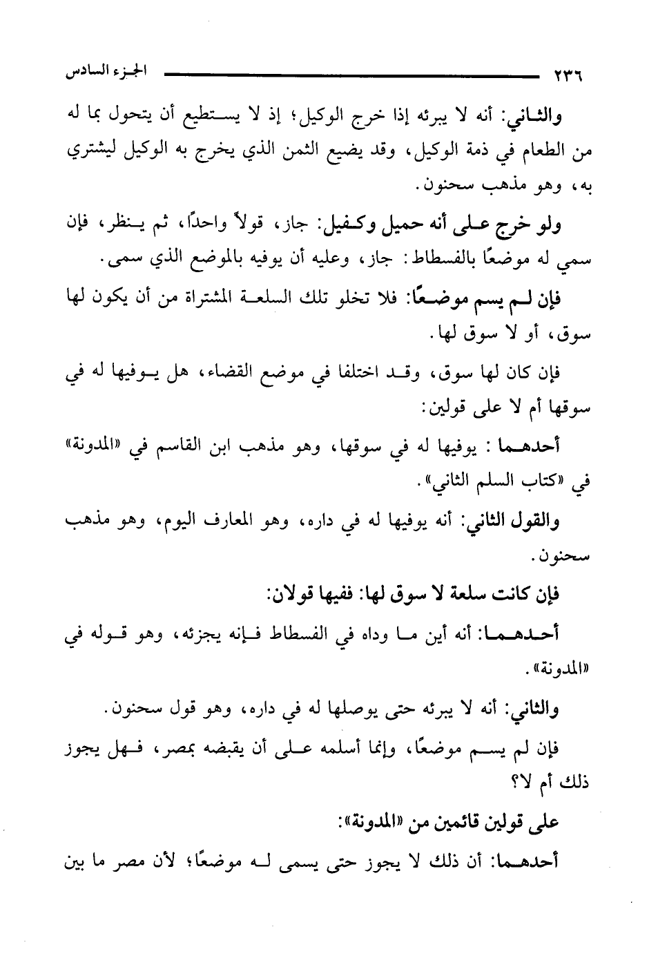 فإن لم يسم موضعًا: فلا تخلو تلك السلعة المشتراة من أن يكون لها سوق، أو لا سوق لها.