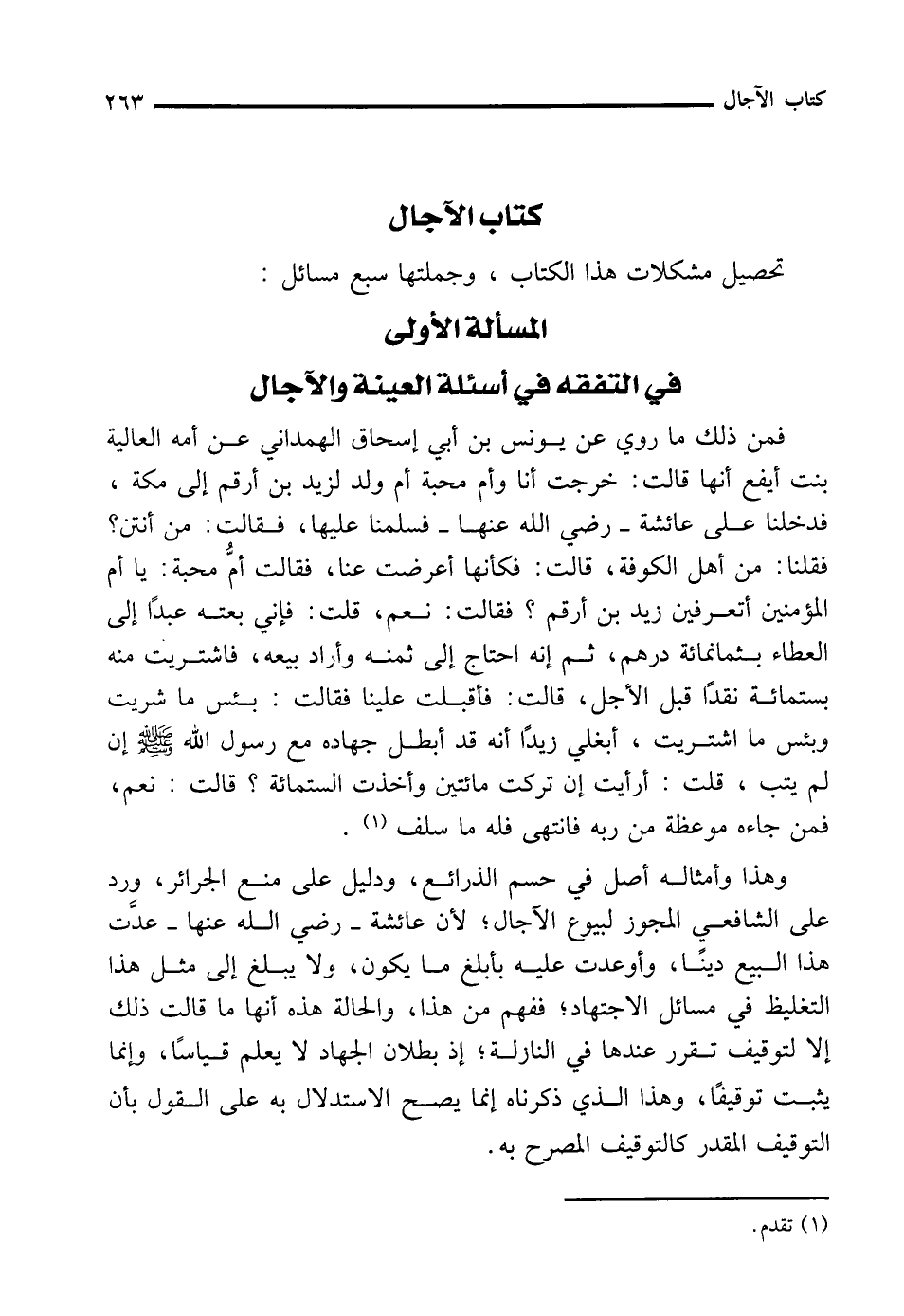 المسألة الأولى في التفقه في أسئلة العينة والآجال
