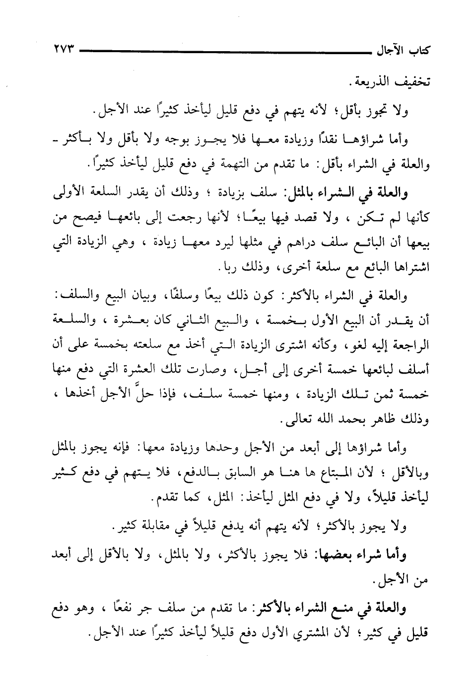 وأما شراء بعضها: فلا يجوز بالأكثر، ولا بالمثل، ولا بالأقل إلى أبعد من الأجل.