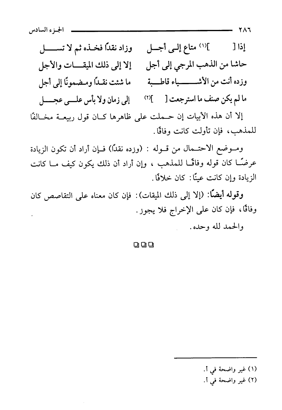 وزده أنت من الأشياء قاطبة ... ما شئت نقدًا ومضمونًا إلى أجل