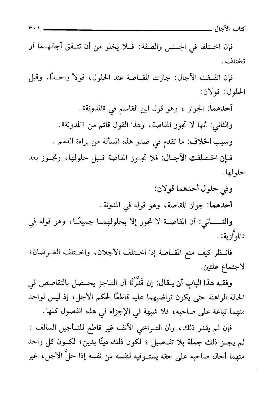 فإن اختلفت الآجال: فلا تجوز المقاصة قبل حلولها، وتجوز بعد حلولها.