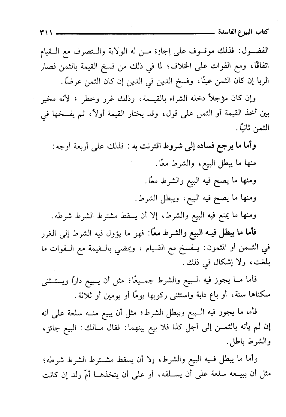 وأما ما يرجع فساده إلى شروط اقترنت به: فذلك على أربعة أوجه: