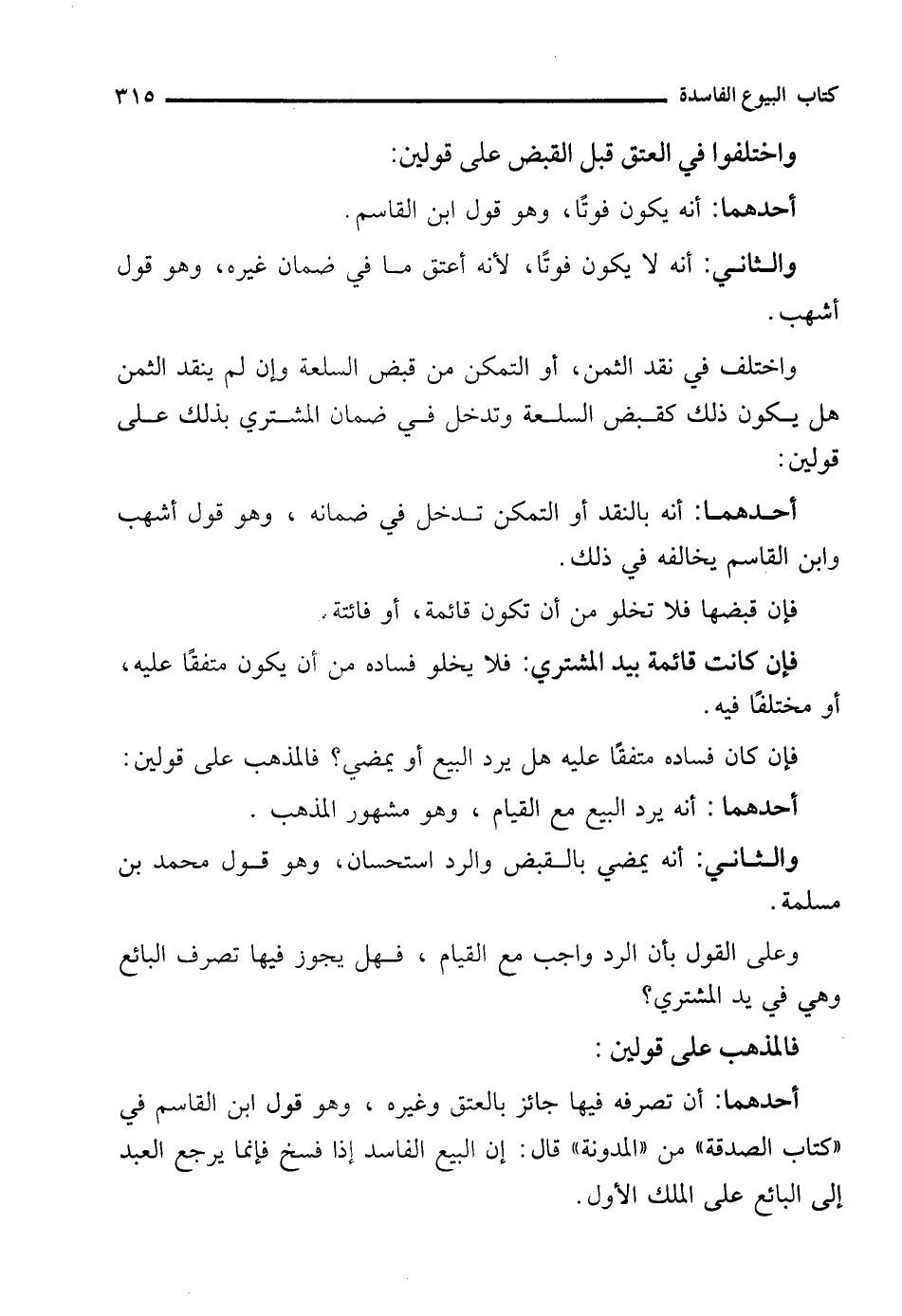 والثاني: أنه يمضي بالقبض والرد استحسان، وهو قول محمَّد بن مسلمة.