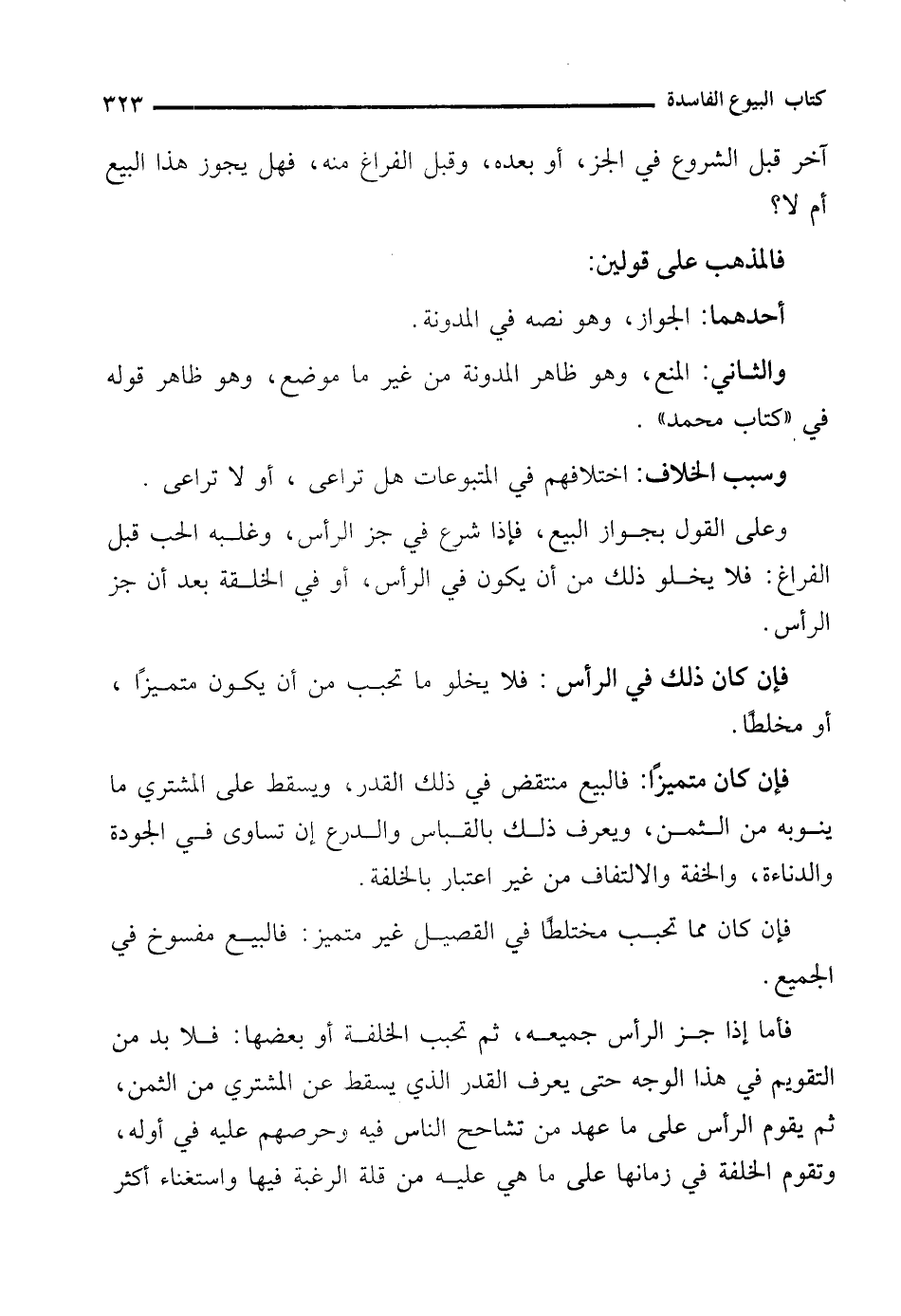 فأما إذا جز الرأس جميعه، ثم تحبب الخلفة أو بعضها: فلابد من التقويم في هذا الوجه حتى يعرف القدر الذي يسقط عن المشتري من الثمن، ثم يقوم الرأس على ما عهد من تشاحح الناس فيه وحرصهم عليه في أوله، وتقوم الخلفة في زمانها على ما هي عليه من قلة الرغبة فيها واستغناء أكثر