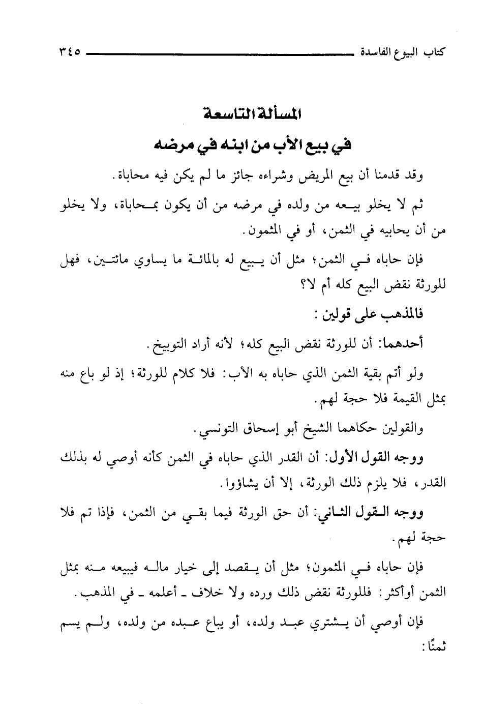 المسألة التاسعة في بيع الأب من ابنه في مرضه