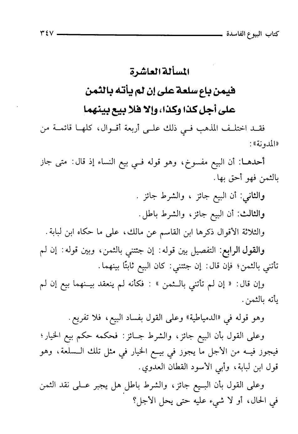 المسألة العاشرة فيمن باع سلعة على إن لم يأته بالثمن على أجل كذا وكذا، وإلا فلا بيع بينهما