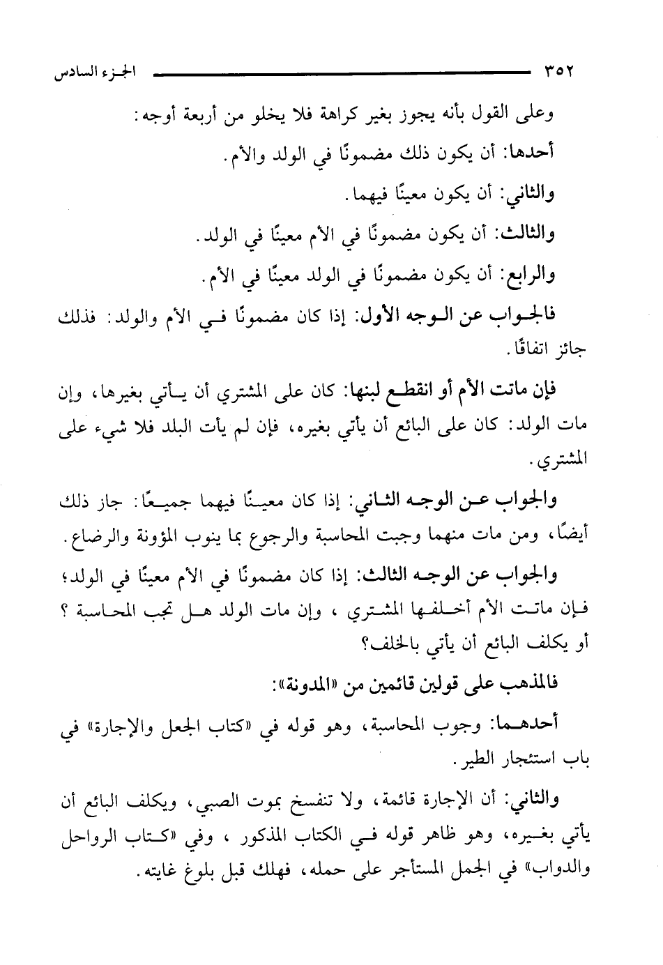 والجواب عن الوجه الثالث: إذا كان مضمونًا في الأم معينًا في الولد؛ فإن ماتت الأم أخلفها المشتري، وإن مات الولد هل تجب المحاسبة؟ أو يكلف البائع أن يأتي بالخلف؟