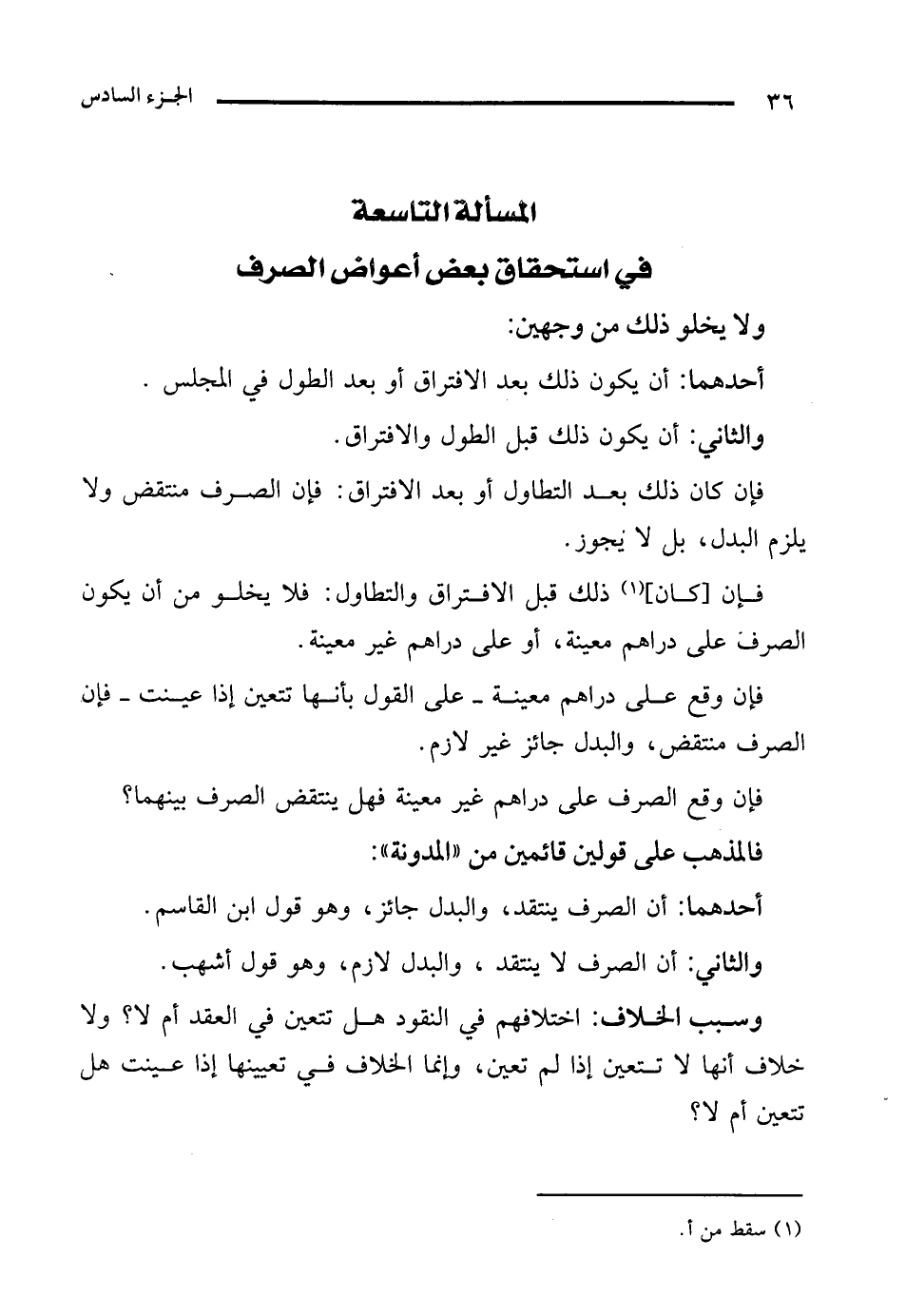 المسألة التاسعة في استحقاق بعض أعواض الصرف