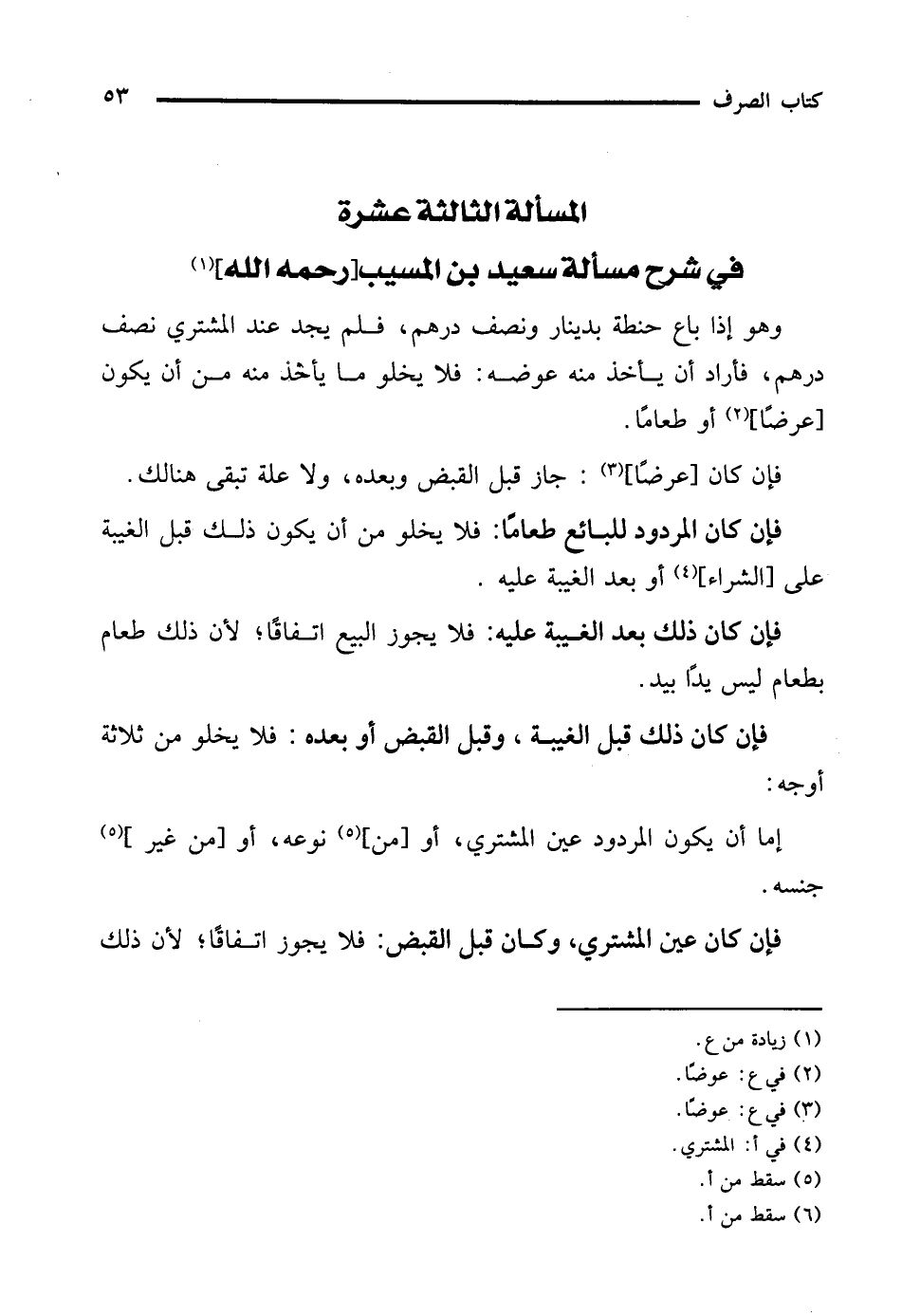 المسألة الثالثة عشرة في شرح مسألة سعيد بن المسيب [رحمه الله] (¬1)