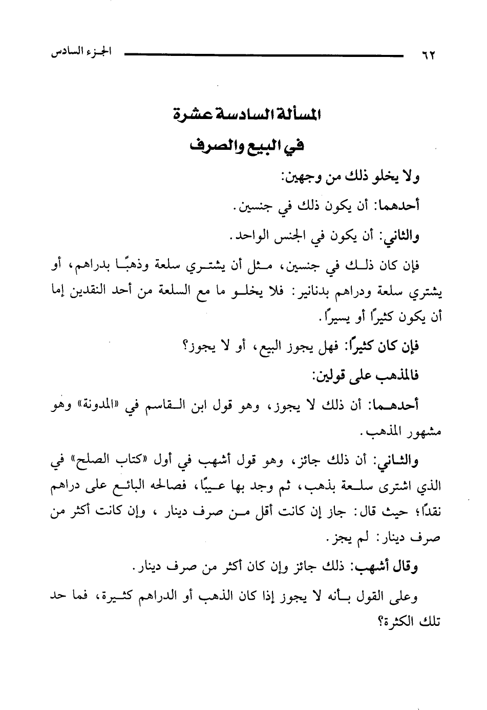 والثاني: أن ذلك جائز، وهو قول أشهب في أول "كتاب الصلح" في الذي اشترى سلعة بذهب، ثم وجد بها عيبًا، فصالحه البائع على دراهم نقدًا؛ حيث قال: جاز إن كانت أقل من صرف دينار، وإن كانت أكثر من صرف دينار: لم يجز.