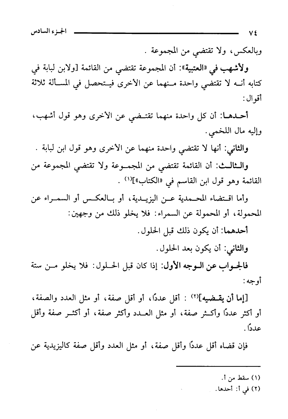 كتاب مناهج التحصيل ونتائج لطائف التأويل في شرح المدونة وحل مشكلاتها (اسم الجزء: 6)