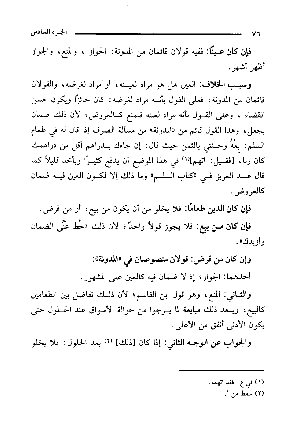 وإن كان من قرض: قولان منصوصان في "المدونة":