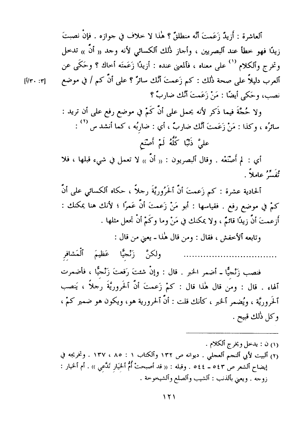 ولا حجة فيما ذكر لأنه يحمل على أن كم في موضع رفع على أن تريد: سائرة، وكذا: من زعمت أنك ضارب، أي: ضاربه، كما أنشد س"
