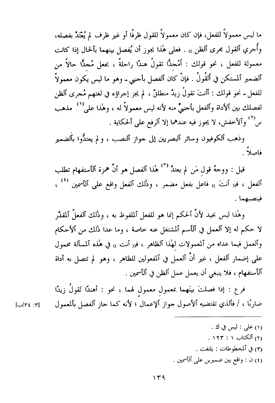 قيل: ووجه قول من لم يعتد هذا الفصل هو أن همزة الاستفهام تطلب الفعل، ف، "أنت" فاعل بفعل مضمر، وذلك الفعل واقع على الأسمين، فينصبهما.