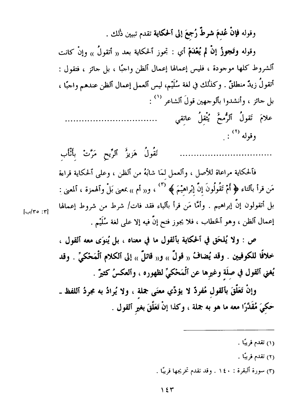 وقد يعني القول فى صله وغيرها عن المحكي لظهوره، والعكس كثير.