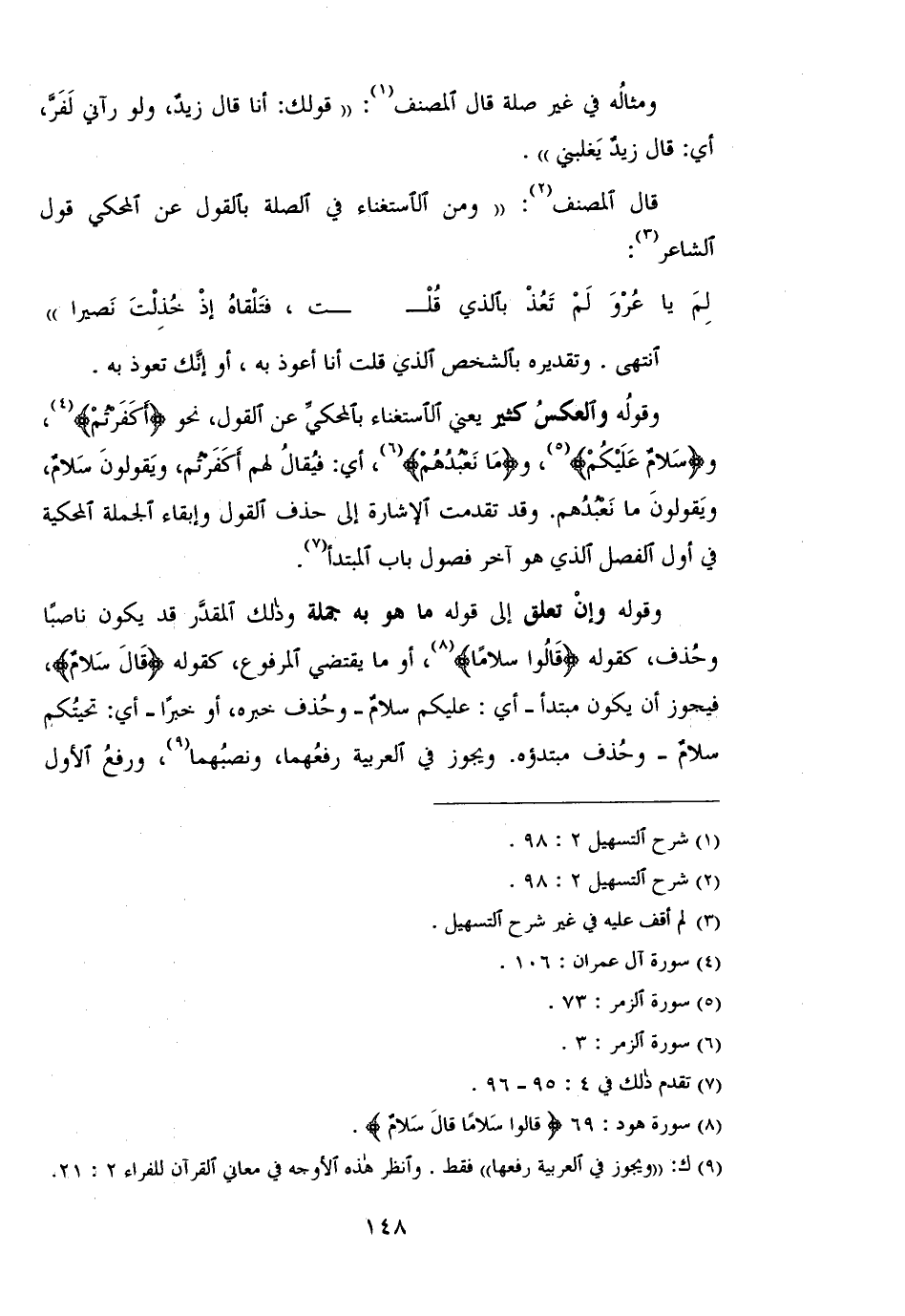 قال المصنف: "ومن الاستغناء في الصلة بالقول عن المحكي قول الشاعر: