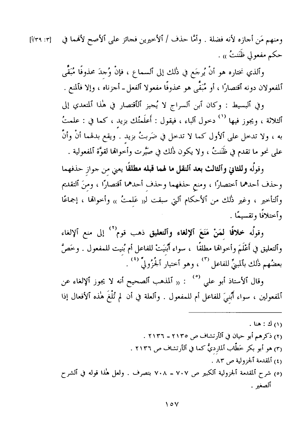وقوله خلافًا لمن منع الإلغاء والتعليق ذهب قوم إلى منع الإلغاء والتعليق في أعلم وأخواتها مطلقًا, سواء أبنيت للفاعل أم بنيت للمفعول, وخص بعضهم ذلك بالمبني للفاعل, وهو اختيار الجزولي.