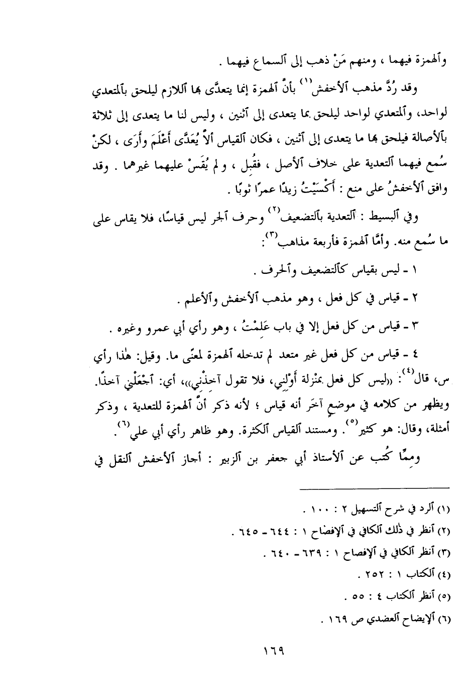 وفي البسيط: التعدية بالتضعيف وحرف الجر ليس قياسًا, فلا يقاس على ما سمع منه وأما الهمزة فأربعة مذاهب: