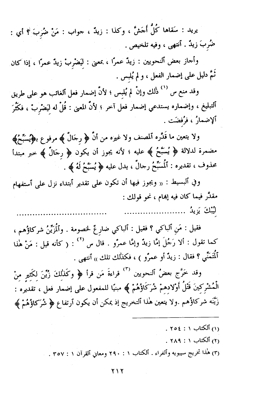 وقد خرج بعض النحويين قراءة من قرأ {وكَذَلِكَ زُيِّنَ لِكَثِيرٍ مِّنَ المُشْرِكِينَ قَتْلُ أَوْلادِهِمْ شُرَكَاؤُهُمْ} مبنيًا للمفعول على إضمار فعل، تقديره: زينه شركاؤهم. ولا يتعين هذا التخريج إذ يمكن أن يكون ارتفاع {شُرَكَاؤُهُمْ}