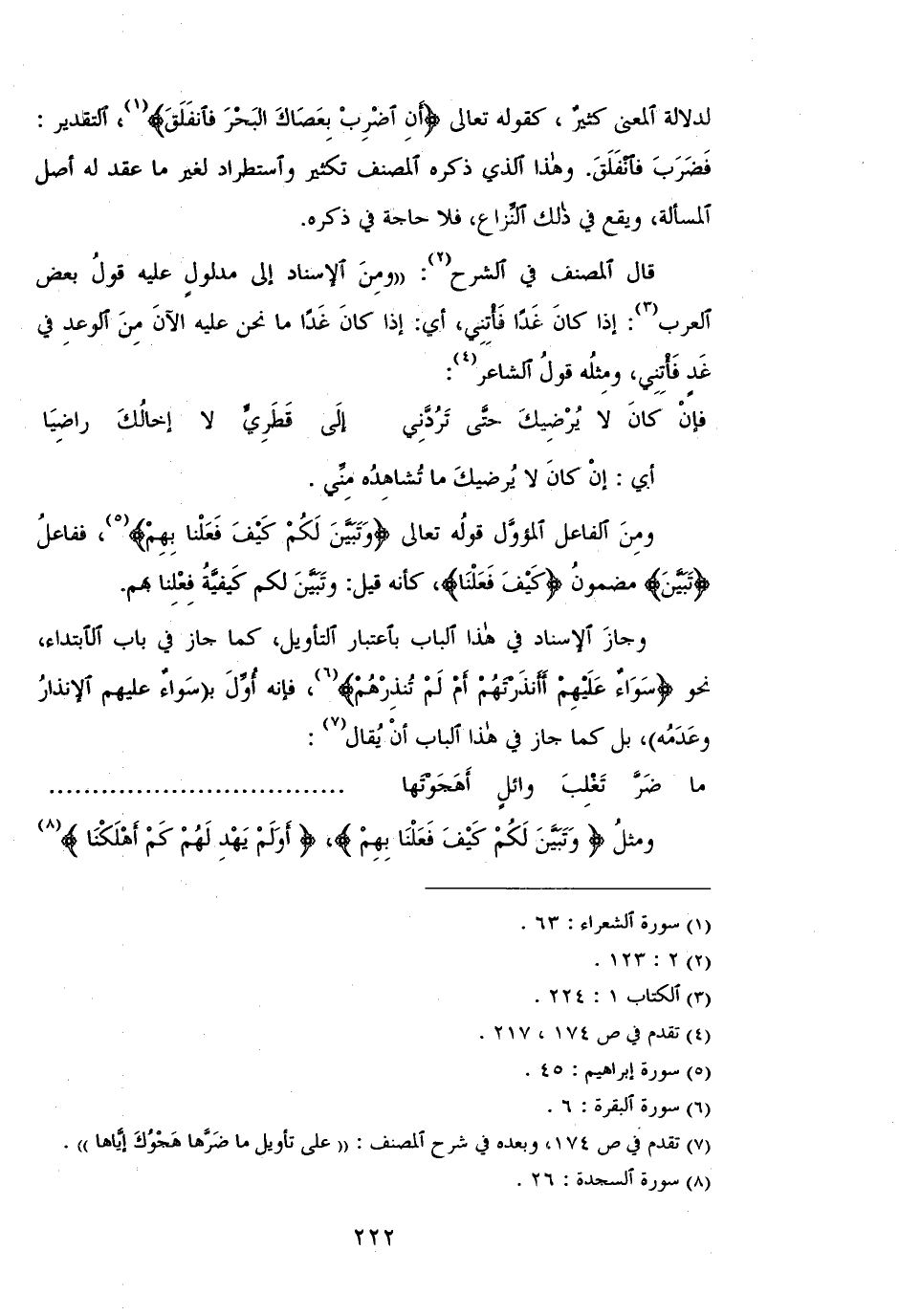 وجاز الإسناد في هذا الباب باعتبار التأويل، كما جاز في باب الابتداء، نحو {سَوَاءٌ عَلَيْهِمْ أَأَنذَرْتَهُمْ أَمْ لَمْ تُنذِرْهُمْ}، فإنه أول بـ (سواء عليهم الإنذار وعدمه)، بل كما جاز في هذا الباب أن يقال: