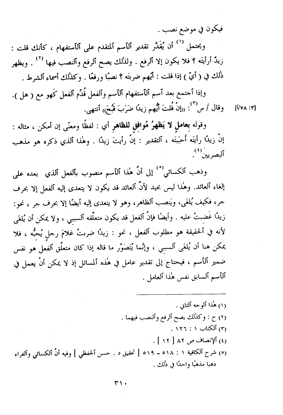 وذهب الكسائي إلى أن هذا الاسم منصوب بالفعل الذي بعده على إلغاء العائد. وهذا ليس بجيد لأن العائد قد يكون لا يتعدى إليه الفعل إلا بحرف جر، فكيف يُلغى، وينصب الظاهر، وهو لا يتعدى إليه أيضًا إلا بحرف جر، نحو: زيدًا غضبت عليه. وأيضًا فإن الفعل قد يكون متعلقه السببي، ولا يمكن أن يُلغى لأنه في الحقيقة هو مطلوب الفعل، نحو: زيدًا ضربت غلام رجل يحبه، فلا يمكن هنا أن يلغى السببي، وإنما يُتصور ما قاله إذا كان متعلق الفعل هو نفس ضمير الاسم، فيحتاج إلى تقدير عامل في هذه المسائل إذ لا يمكن أن يعمل في الاسم السابق نفس هذا العامل.