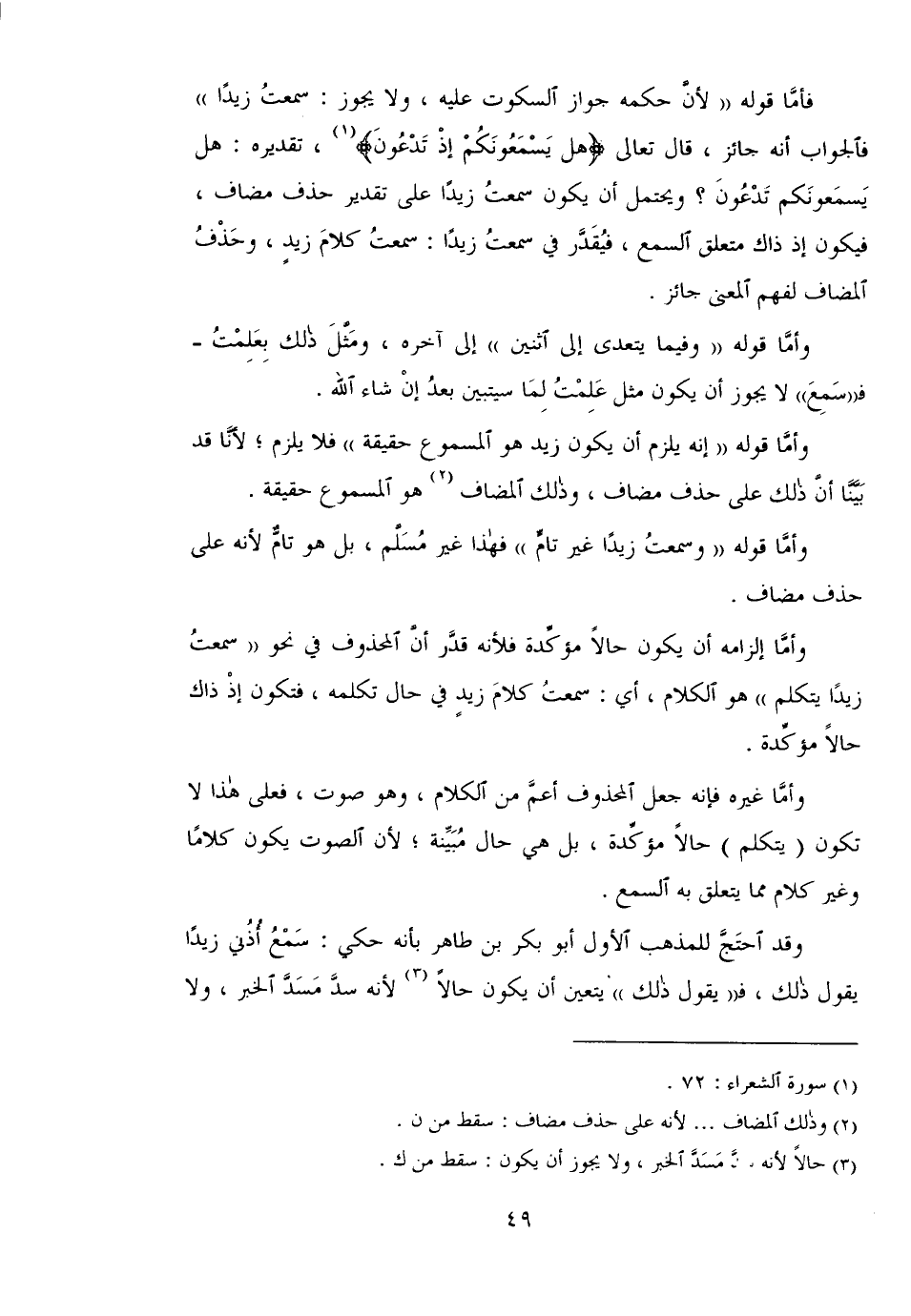 وأما قوله " إنه يلزم أن يكون زيد هـ المسموع حقيقة" فلا يلزم؛ لأنا قد بينا أن ذلك على حذف مضاف، وذلك المضاف هو المسموع حقيقة.