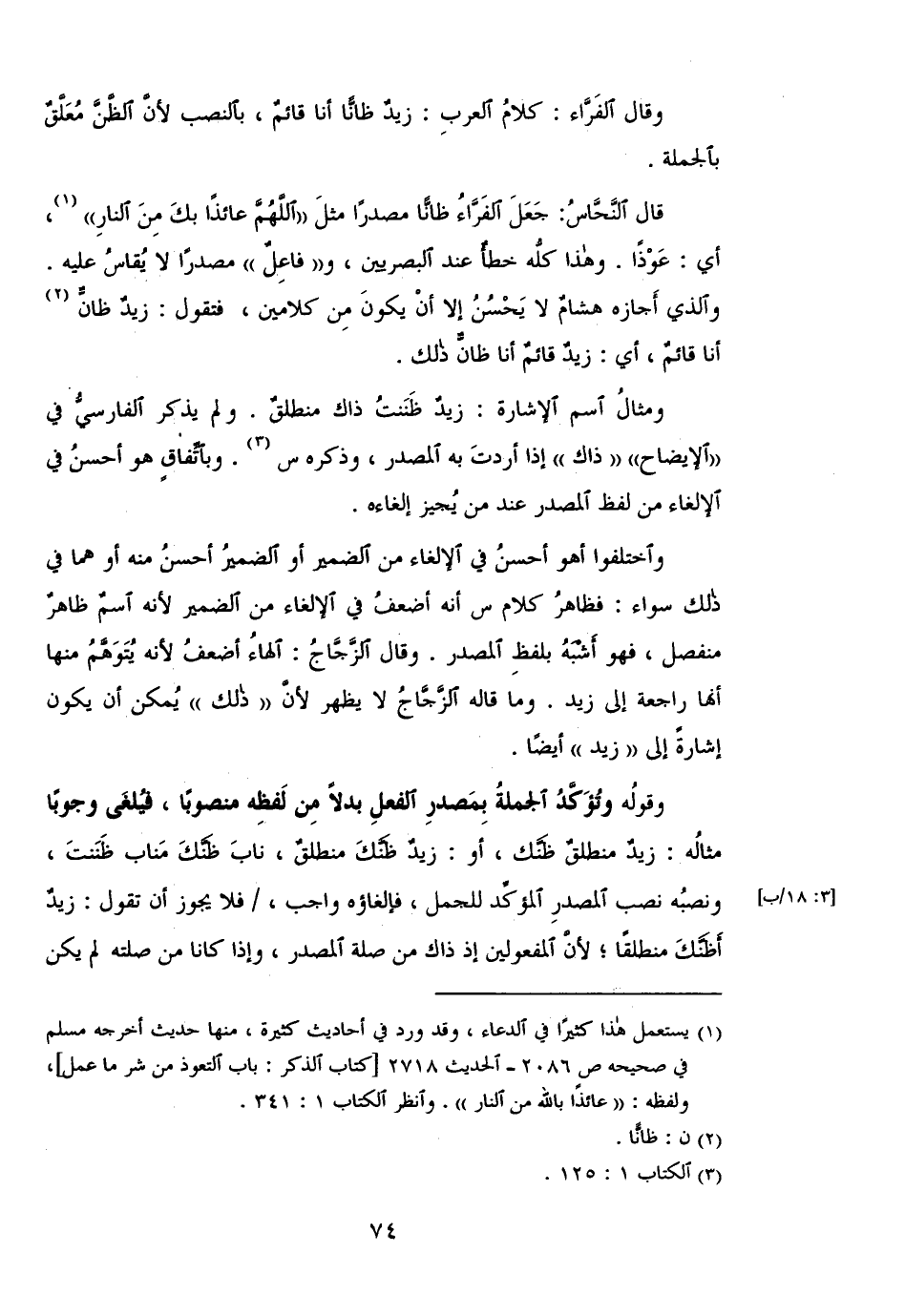 مثاله: زيد منطلق ظنك،