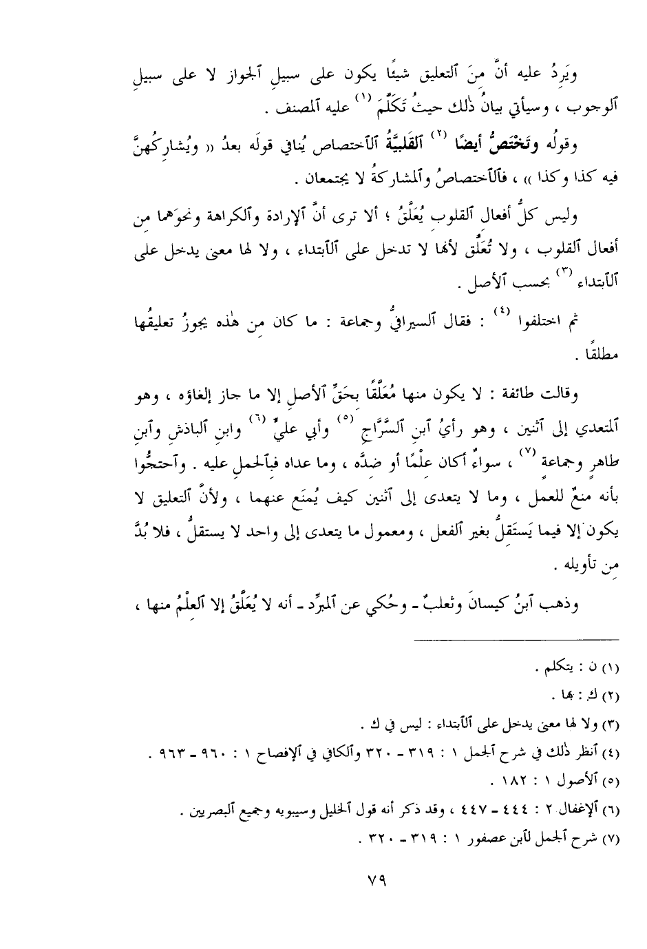 ثم اختلفوا: فقال السيرافي وجماعة: ما كان من هذه يجوز تعليقها مطلقا.