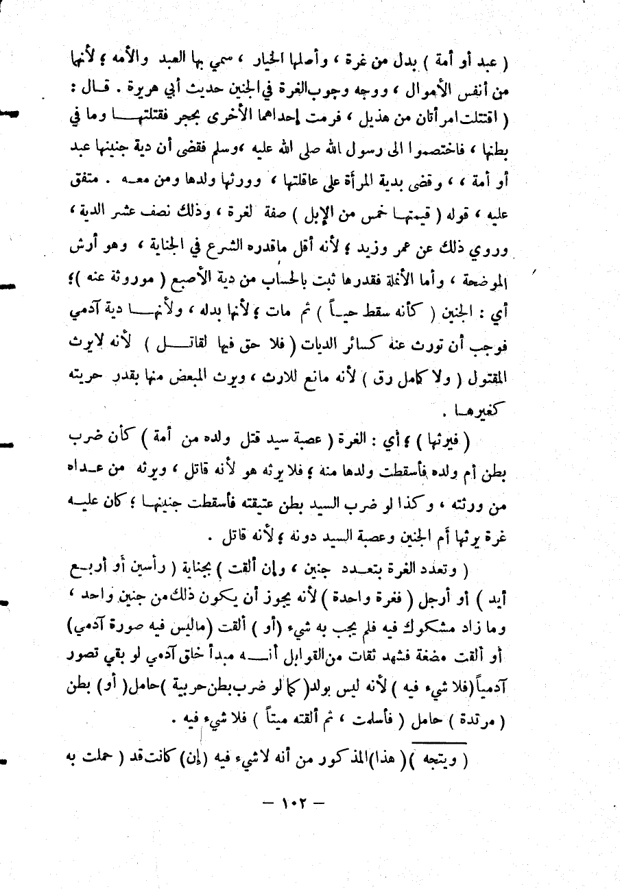 (عَبْدٌ أَوْ أَمَةٌ) بَدَلٌ مِنْ غُرَّةٍ، وَأَصْلُهَا الْخِيَارُ، سَمَّى بِهَا الْعَبْدَ وَالْأَمَةَ؛ لِأَنَّهُمَا مِنْ أَنْفَسِ الْأَمْوَالِ وَوَجْهُ وُجُوبِ الْغُرَّةِ فِي الْجَنِينِ حَدِيثُ أَبِي هُرَيْرَةَ. قَالَ: «اقْتَتَلَتْ امْرَأَتَانِ مِنْ هُذَيْلٍ، فَرَمَتْ إحْدَاهُمَا الْأُخْرَى بِحَجَرٍ فَقَتَلَتْهَا وَمَا فِي بَطْنِهَا، فَاخْتَصَمُوا إلَى رَسُولِ اللَّهِ - صَلَّى اللَّهُ عَلَيْهِ وَسَلَّمَ - فَقَضَى أَنَّ دِيَةَ جَنِينِهَا غُرَّةٌ عَبْدٌ أَوْ أَمَةٌ وَقَضَى بِدِيَةِ الْمَرْأَةِ عَلَى عَاقِلَتِهَا، وَوَرِثَهَا وَلَدُهَا وَمَنْ مَعَهُ» مُتَّفَقٌ عَلَيْهِ.