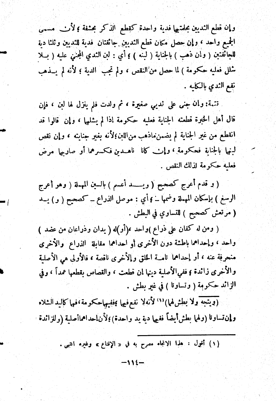 (وَمَنْ لَهُ كَفَّانِ عَلَى ذِرَاعٍ) وَاحِدٍ، (أَوْ) لَهُ (يَدَانِ وَذِرَاعَانِ مِنْ عَضُدٍ) وَاحِدٍ، وَإِحْدَاهُمَا بَاطِشَةٌ دُونَ الْأُخْرَى أَوْ إحْدَاهُمَا مُقَابِلَةُ الذِّرَاعِ وَالْأُخْرَى مُنْحَرِفَةٌ عَنْهُ، أَوْ إحْدَاهُمَا تَامَّةُ الْخَلْقِ وَالْأُخْرَى نَاقِصَةٌ، فَالْأُولَى هِيَ الْأَصْلِيَّةُ وَالْأُخْرَى زَائِدَةٌ؛ فَفِي الْأَصْلِيَّةِ دِيَتُهَا إنْ قُطِعَتْ، وَالْقِصَاصُ بِقَطْعِهَا عَمْدًا، وَفِي الزَّائِدِ حُكُومَةٌ (وَتَسَاوَتَا) فِي غَيْرِ بَطْشٍ.