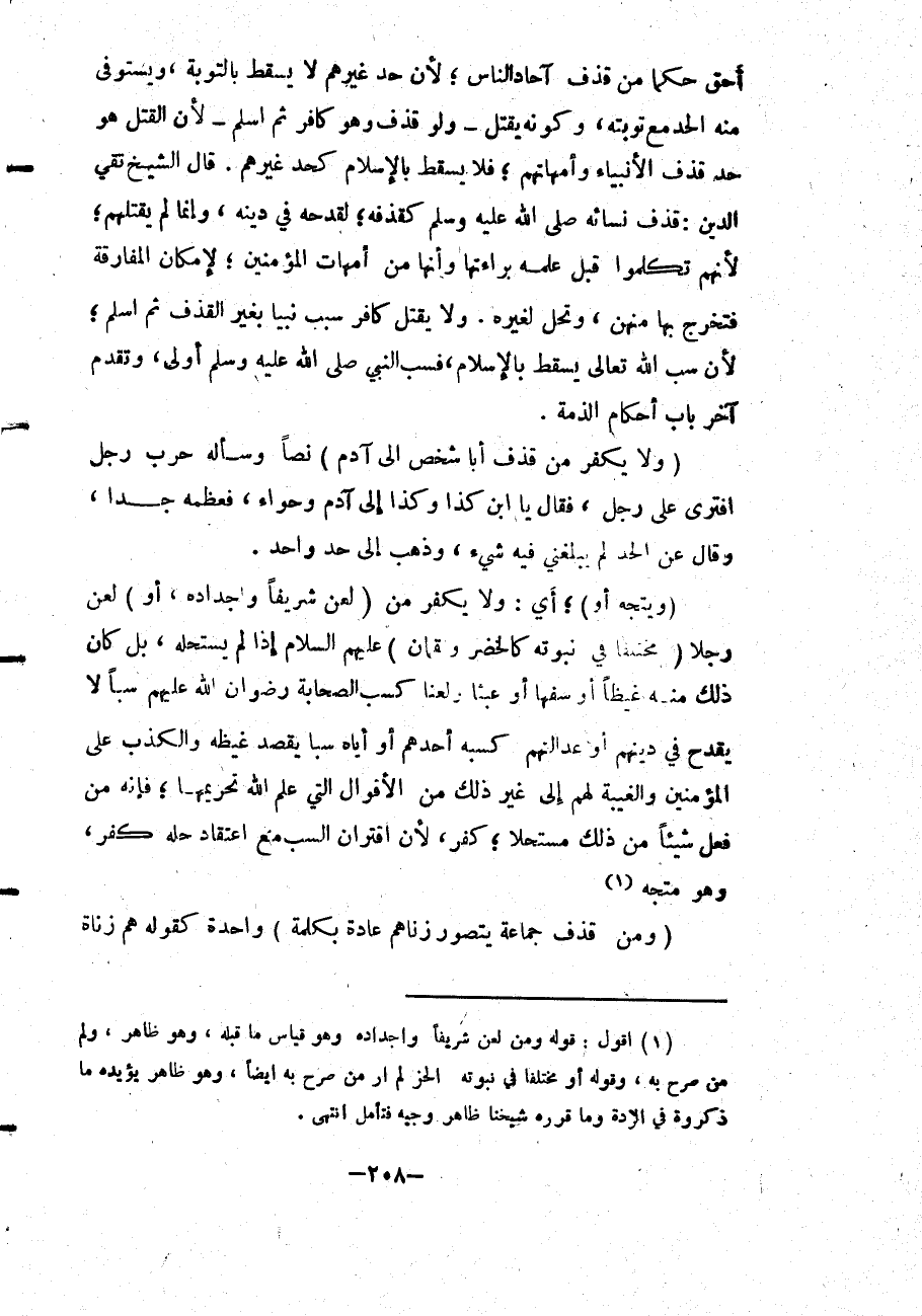 (وَيَتَّجِهُ أَوْ) ؛ أَيْ: وَلَا يُكَفَّرُ مَنْ (لَعَنَ شَرِيفًا وَأَجْدَادَهُ، أَوْ) لَعَنَ رَجُلًا (مُخْتَلَفٌ فِي نُبُوَّتِهِ كَالْخَضِرِ وَلُقْمَانَ) - عَلَيْهِمْ السَّلَامُ - إذَا لَمْ يَسْتَحِلَّهُ، بَلْ كَانَ ذَلِكَ مِنْهُ غَيْظًا أَوْ سَفَهًا أَوْ عَبَثًا وَلَعْنًا كَسَبِّ الصَّحَابَةِ - رِضْوَانُ اللَّهِ عَلَيْهِمْ - سَبًّا لَا يَقْدَحُ فِي دِينِهِمْ أَوْ عَدَالَتِهِمْ كَسَبِّهِ أَحَدَهُمْ أَوْ إيَّاهُ سَبًّا يَقْصِدُ غَيْظَهُ وَالْكَذِبَ عَلَى الْمُؤْمِنِينَ وَالْغِيبَةَ لَهُمْ إلَى غَيْرِ ذَلِكَ مِنْ الْأَقْوَالِ الَّتِي عَلَّمَ اللَّهِ تَحْرِيمَهَا؛ فَإِنَّهُ مِنْ فَعَلَ شَيْئًا مِنْ ذَلِكَ مُسْتَحِلًّا؛ كُفِّرَ، لِأَنَّ اقْتِرَانَ السَّبِّ مَعَ اعْتِقَادِ حِلِّهِ كُفْرٌ، وَهُوَ مُتَّجِهٌ.