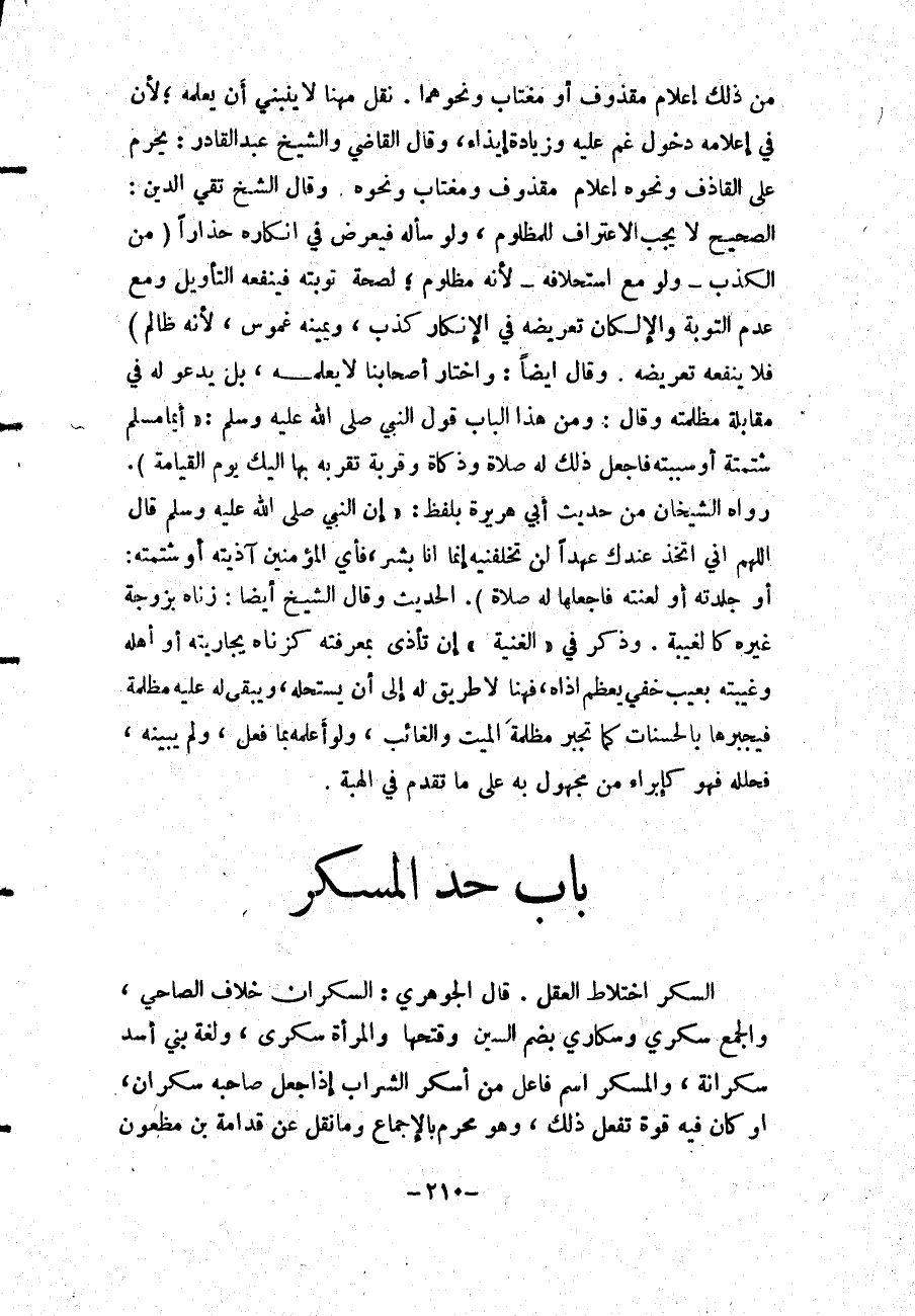 ِ السُّكْرُ اخْتِلَاطُ الْعَقْلِ. قَالَ الْجَوْهَرِيُّ: السَّكْرَانُ خِلَافُ الصَّاحِي، وَالْجَمْعُ سَكْرَى وَسَكَارَى بِضَمِّ السِّينِ وَفَتْحِهَا وَالْمَرْأَةُ سَكْرَى، وَلُغَةُ بَنِي أَسَدٍ سَكْرَانَةُ، وَالْمُسْكِرُ اسْمُ فَاعِلٍ مِنْ أَسْكَرَ الشَّرَابُ إذَا جَعَلَ صَاحِبَهُ سَكْرَانَ، أَوْ كَانَ فِيهِ قُوَّةٌ تَفْعَلُ ذَلِكَ، وَهُوَ مُحَرَّمٌ بِالْإِجْمَاعِ وَمَا نُقِلَ عَنْ قُدَامَةَ بْنِ مَظْعُونٍ