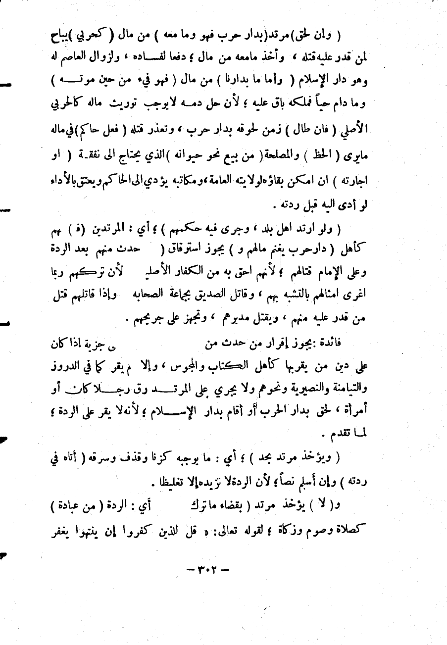 (وَلَوْ ارْتَدَّ أَهْلُ بَلَدٍ، وَجَرَى فِيهِ حُكْمُهُمْ) ؛ أَيْ: الْمُرْتَدِّينَ (ف) هُمْ كَأَهْلِ (دَارِ حَرْبٍ يُغْنَمُ مَالُهُمْ وَ) يَجُوزُ اسْتِرْقَاقٌ (حَدَثَ مِنْهُمْ بَعْدَ الرِّدَّةِ) وَعَلَى الْإِمَامِ قِتَالُهُمْ؛ لِأَنَّهُمْ أَحَقُّ بِهِ مِنْ الْكُفَّارِ الْأَصْلِيِّينَ لِأَنَّ تَرْكَهُمْ رُبَّمَا أَغْرَى أَمْثَالَهُمْ بِالتَّشَبُّهِ بِهِمْ، وَقَاتَلَ الصِّدِّيقُ بِجَمَاعَةِ الصَّحَابَةِ وَإِذَا قَاتَلَهُمْ قَتَلَ مَنْ قَدَرَ عَلَيْهِ مِنْهُمْ، وَيُقْتَلُ مُدَبَّرُهُمْ، وَتُجْهَزُ عَلَى جَرِيحِهِمْ.