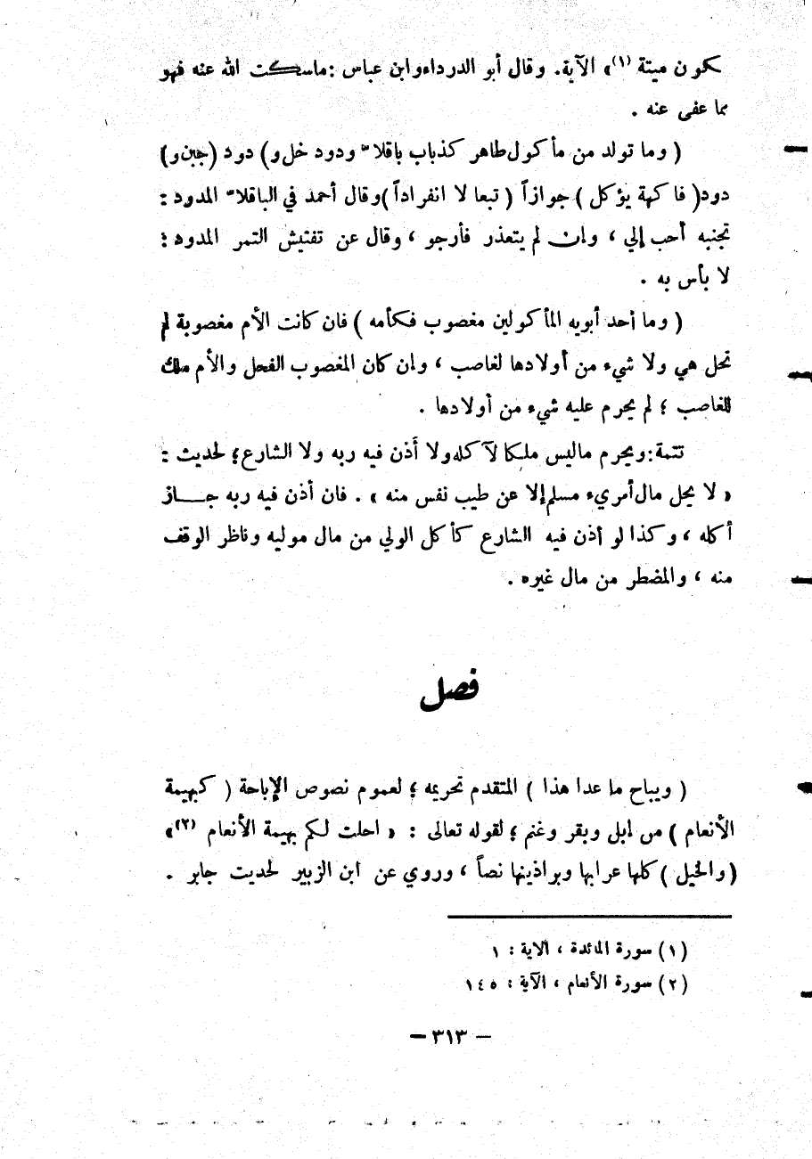 {قُلْ لا أَجِدُ فِي مَا أُوحِيَ إِلَيَّ مُحَرَّمًا عَلَى طَاعِمٍ يَطْعَمُهُ إِلا أَنْ يَكُونَ مَيْتَةً} [الأنعام: 145] الْآيَةَ.