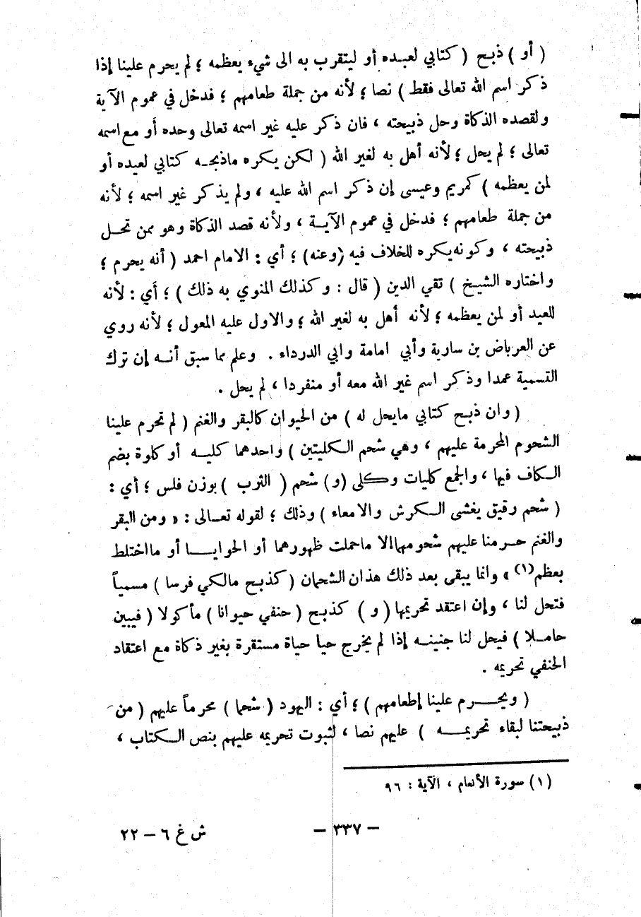(وَيَحْرُمُ عَلَيْنَا إطْعَامُهُمْ) ، أَيْ: الْيَهُودِ (شَحْمًا) مُحَرَّمًا عَلَيْهِمْ (مِنْ ذَبِيحَتِنَا لِبَقَاءِ تَحْرِيمِهِ) عَلَيْهِمْ نَصًّا، لِثُبُوتِ تَحْرِيمِهِ عَلَيْهِمْ بِنَصِّ الْكِتَابِ،