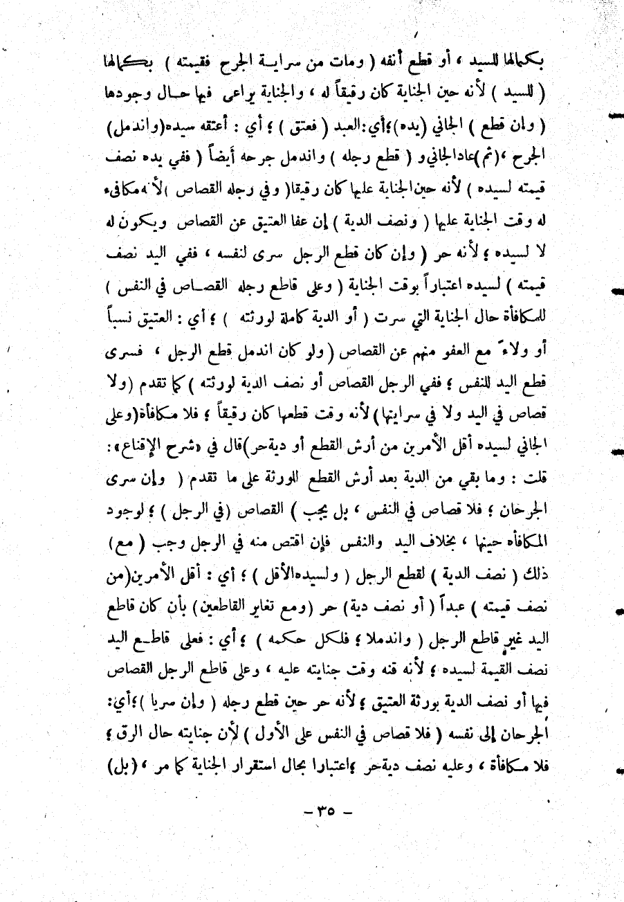(وَإِنْ كَانَ قَطْعُ الرِّجْلِ سَرَى لِنَفْسِهِ، فَفِي الْيَدِ نِصْفُ قِيمَتِهِ) لِسَيِّدِهِ اعْتِبَارًا بِوَقْتِ الْجِنَايَةِ (وَعَلَى قَاطِعِ رِجْلِهِ الْقِصَاصُ فِي النَّفْسِ) لِلْمُكَافَأَةِ حَالَ الْجِنَايَةِ الَّتِي سَرَتْ (أَوْ الدِّيَةُ كَامِلَةً لِوَرَثَتِهِ) ؛ أَيْ: الْعَتِيقِ نَسَبًا أَوْ وَلَاءً مَعَ الْعَفْوِ مِنْهُمْ عَنْ الْقِصَاصِ (وَلَوْ كَانَ انْدَمَلَ قَطْعُ الرِّجْلِ، فَسَرَى قَطْعُ الْيَدِ لِلنَّفْسِ؛ فَفِي الرِّجْلِ الْقِصَاصُ أَوْ نِصْفُ الدِّيَةِ لِوَرَثَتِهِ) كَمَا تَقَدَّمَ (وَلَا قِصَاصَ فِي الْيَدِ، وَلَا فِي سِرَايَتِهَا) ؛ لِأَنَّهُ وَقْتَ قَطْعِهَا كَانَ رَقِيقًا؛ فَلَا مُكَافَأَةَ (وَعَلَى الْجَانِي لِسَيِّدِهِ أَقَلُّ الْأَمْرَيْنِ مِنْ أَرْشِ الْقَطْعِ أَوْ دِيَةِ حُرٍّ) قَالَ فِي " شَرْحِ الْإِقْنَاعِ ": قُلْت: وَمَا بَقِيَ مِنْ الدِّيَةِ بَعْدَ أَرْشِ الْقَطْعِ لِلْوَرَثَةِ عَلَى مَا تَقَدَّمَ (وَإِنْ سَرَى الْجُرْحَانِ؛ فَلَا قِصَاصَ فِي النَّفْسِ، بَلْ يَجِبُ) الْقِصَاصُ (فِي الرِّجْلِ) ؛ لِوُجُودِ الْمُكَافَأَةِ حِينهَا، بِخِلَافِ الْيَدِ، وَالنَّفْسِ فَإِنْ اقْتَصَّ مِنْهُ فِي الرِّجْلِ وَجَبَ (مَعَ) ذَلِكَ (نِصْفُ الدِّيَةِ) لِقَطْعِ الرِّجْلِ (وَلِسَيِّدِهِ الْأَقَلُّ) ؛ أَيْ: أَقَلُّ الْأَمْرَيْنِ (مِنْ نِصْفِ قِيمَتِهِ) عَبْدًا (أَوْ نِصْفِ دِيَةِ) حُرٍّ (وَمَعَ تَغَايُرِ الْقَاطِعَيْنِ) بِأَنْ كَانَ قَاطِعُ الْيَدِ غَيْرَ قَاطِعِ الرِّجْلِ (وَانْدَمَلَا؛ فَلِكُلٍّ حُكْمُهُ) ؛ أَيْ: فَعَلَى قَاطِعِ الْيَدِ نِصْفُ الْقِيمَةِ لِسَيِّدِهِ؛ لِأَنَّهُ قِنُّهُ وَقْتَ جِنَايَتِهِ عَلَيْهِ، وَعَلَى قَاطِعِ الرِّجْلِ الْقِصَاصُ فِيهَا أَوْ نِصْفُ الدِّيَةِ بِوَرَثَةِ الْعَتِيقِ؛ لِأَنَّهُ حُرٌّ حِينَ قَطَعَ رِجْلَهُ (وَإِنْ سَرَيَا) ؛ أَيْ: الْجُرْحَانِ إلَى نَفْسِهِ (فَلَا قِصَاصَ فِي النَّفْسِ عَلَى الْأَوَّلِ) ؛ لِأَنَّ جِنَايَتَهُ حَالَ الرِّقِّ؛ فَلَا مُكَافَأَةَ، وَعَلَيْهِ نِصْفُ دِيَةِ حُرٍّ؛ اعْتِبَارًا بِحَالِ اسْتِقْرَارِ الْجِنَايَةِ كَمَا مَرَّ، (بَلْ)
