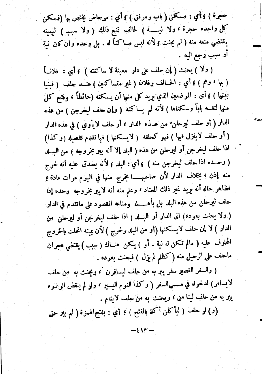(وَإِنْ حَلَفَ لَيَخْرُجَنَّ) مِنْ هَذِهِ الدَّارِ (أَوْ حَلَفَ لَيَرْحَلَنَّ مِنْ هَذِهِ الدَّارِ، أَوْ حَلَفَ لَا يَأْوِي) فِي هَذِهِ الدَّارِ (أَوْ حَلَفَ لَا يَنْزِلُ فِيهَا) فَهُوَ كَحَلِفِهِ (لَا يَسْكُنُهَا) فِيمَا تَقَدَّمَ تَفْصِيلُهُ، (وَكَذَا) إذَا حَلَفَ لَيَخْرُجَنَّ أَوْ لَيَرْحَلَنَّ مِنْ هَذِهِ (الْبَلَدِ إلَّا أَنَّهُ يَبَرُّ بِخُرُوجِهِ) مِنْ الْبَلَدِ (وَحْدَهُ إذَا حَلَفَ لَيَخْرُجَنَّ مِنْهُ) ، أَيْ: الْبَلَدِ؛ لِأَنَّهُ يَصْدُقُ عَلَيْهِ أَنَّهُ خَرَجَ مِنْهُ إذَنْ، بِخِلَافِ الدَّارِ؛ لِأَنَّ صَاحِبَهَا يَخْرُجُ مِنْهَا فِي الْيَوْمِ مَرَّاتٍ عَادَةً فَظَاهِرُ حَالِهِ أَنَّهُ يُرِيدُ غَيْرَ ذَلِكَ الْمُعْتَادِ، وَعُلِمَ مِنْهُ أَنَّهُ لَا يَبَرُّ بِخُرُوجِهِ وَحْدَهُ إذَا حَلَفَ لَيَرْحَلَنَّ مِنْ هَذِهِ الْبَلَدِ بَلْ بِأَهْلِهِ وَمَتَاعِهِ الْمَقْصُودِ عَلَى مَا تَقَدَّمَ فِي الدَّارِ، (وَلَا يَحْنَثُ بِعَوْدِهِ) إلَى الدَّارِ أَوْ الْبَلَدِ (إذَا حَلَفَ لَيَخْرُجَنَّ أَوْ لَيَرْحَلَنَّ مِنْ الدَّارِ) لَا إنْ حَلَفَ لَا يَسْكُنُهَا (أَوْ مِنْ الْبَلَدِ وَخَرَجَ) ؛ لِأَنَّ يَمِينَهُ انْحَلَّتْ بِالْخُرُوجِ الْمَحْلُوفِ عَلَيْهِ (مَا لَمْ تَكُنْ لَهُ نِيَّةٌ أَوْ) يَكُنْ هُنَاكَ (سَبَبٌ) يَقْتَضِي هِجْرَانَ مَا حَلَفَ عَلَى الرَّحِيلِ مِنْهُ (كَظُلْمٍ لَمْ يَزُلْ) فَيَحْنَثُ بِعَوْدِهِ.
