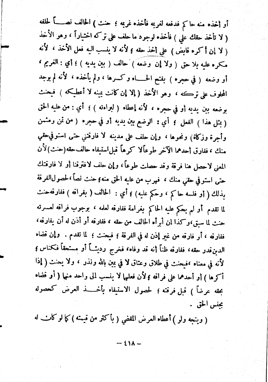 وَإِنْ حَلَفَ عَلَى مَدِينِهِ لَا فَارَقَتْنِي حَتَّى أَسْتَوْفِيَ حَقِّي مِنْك، فَفَارَقَ أَحَدُهُمَا الْآخَرَ طَوْعًا لَا كَرْهًا قَبْلَ اسْتِيفَاءِ حَالِفٍ حَقَّهُ (حَنِثَ) ؛ لِأَنَّ الْمَعْنَى لَا حَصَلَ هُنَا فِرْقَةً وَقَدْ حَصَلَتْ طَوْعًا، وَإِنْ حَلَفَ لَافْتَرَقْنَا أَوْ لَا فَارَقْتُكَ حَتَّى أَسْتَوْفِيَ حَقِّي مِنْك، فَهَرَبَ مَنْ عَلَيْهِ الْحَقُّ مِنْهُ حَنِثَ نَصًّا، لِحُصُولِ الْفُرْقَةِ بِذَلِكَ (أَوْ فَلَّسَهُ حَاكِمٌ، وَحَكَمَ عَلَيْهِ) ، أَيْ: الْحَالِفِ (بِفِرَاقِهِ) فَفَارَقَهُ حَنِثَ لِمَا تَقَدَّمَ أَوْ لَمْ يَحْكُمْ عَلَيْهِ الْحَاكِمُ بِغَرَامَةٍ فَفَارَقَهُ لِعِلْمِهِ، بِوُجُوبِ فِرَاقِهِ لِعُسْرَتِهِ حَنِثَ لِمَا سَبَقَ.