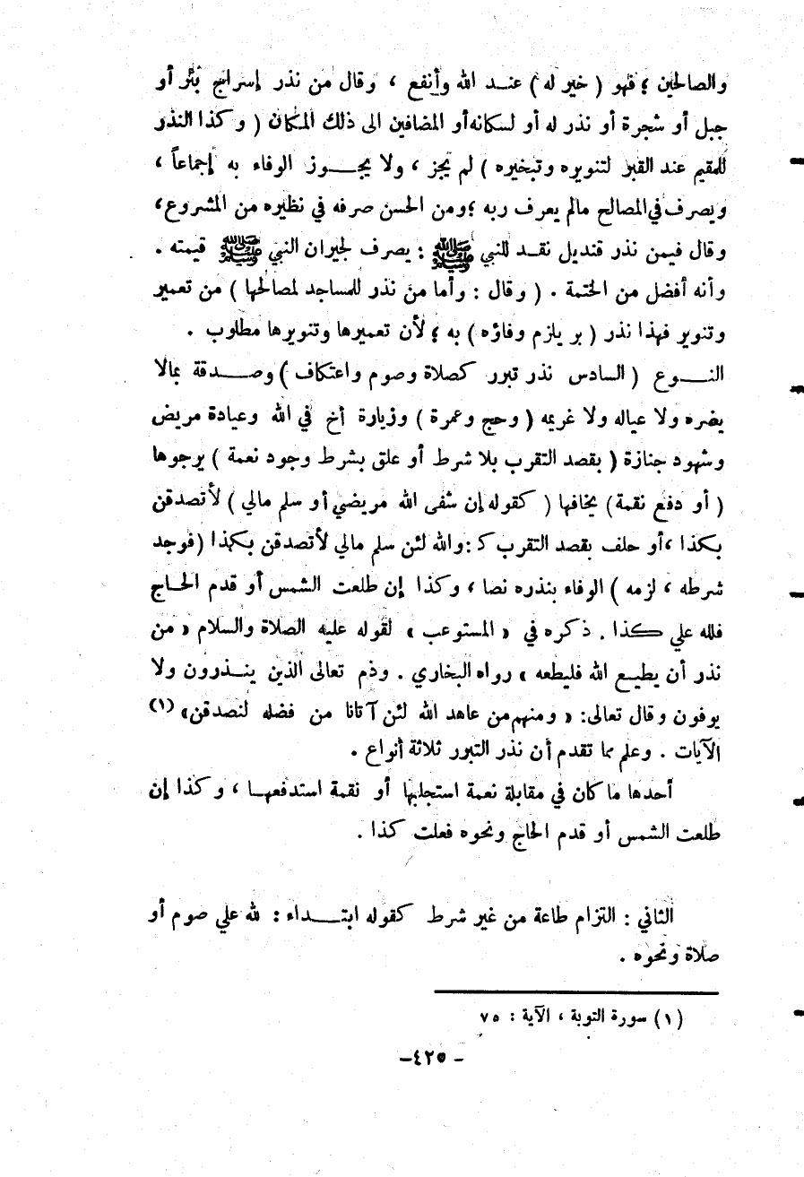 وَعُلِمَ مِمَّا تَقَدَّمَ أَنَّ نَذْرَ التَّبَرُّرِ ثَلَاثَةُ أَنْوَاعٍ.