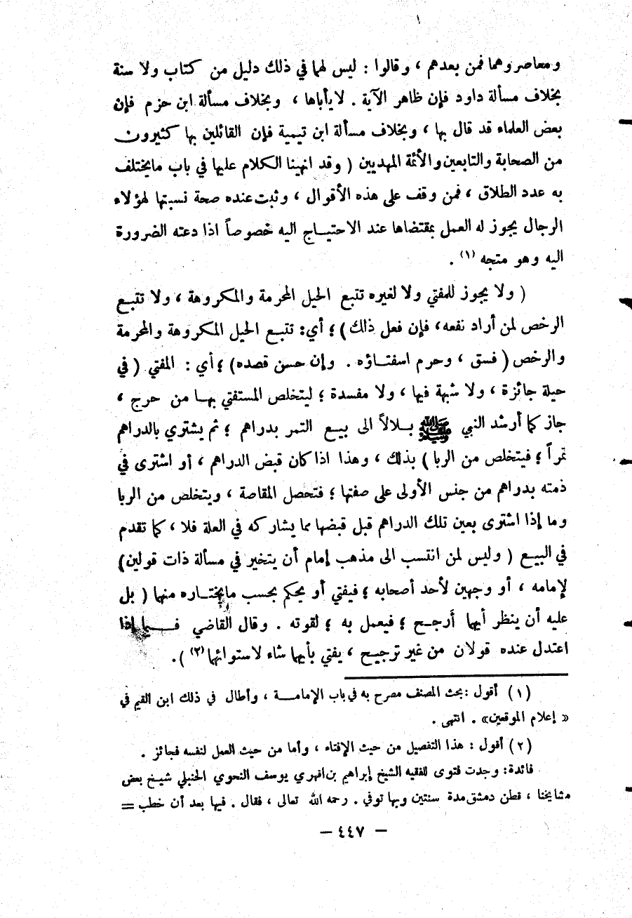لَا يَأْبَاهَا، وَبِخِلَافِ مَسْأَلَةِ ابْنِ حَزْمٍ فَإِنَّ بَعْضَ الْعُلَمَاءِ قَدْ قَالَ بِهَا، وَبِخِلَافِ مَسْأَلَةِ ابْنِ تَيْمِيَّةَ فَإِنَّ الْقَائِلِينَ بِهَا كَثِيرُونَ مِنْ الصَّحَابَةِ وَالتَّابِعِينَ وَالْأَئِمَّةِ الْمَهْدِيِّينَ وَقَدْ أَنْهَيْنَا الْكَلَامَ عَلَيْهَا فِي بَابِ مَا يَخْتَلِفُ بِهِ عَدَدُ الطَّلَاقِ، فَمَنْ وَقَفَ عَلَى هَذِهِ الْأَقْوَالِ وَثَبَتَ عِنْدَهُ صِحَّةُ نِسْبَتِهَا لِهَؤُلَاءِ الرِّجَالِ يَجُوزُ لَهُ الْعَمَلُ بِمُقْتَضَاهَا عِنْدَ الِاحْتِيَاجِ إلَيْهِ خُصُوصًا إذَا دَعَتْهُ الضَّرُورَةُ إلَيْهِ وَهُوَ مُتَّجِهٌ.
